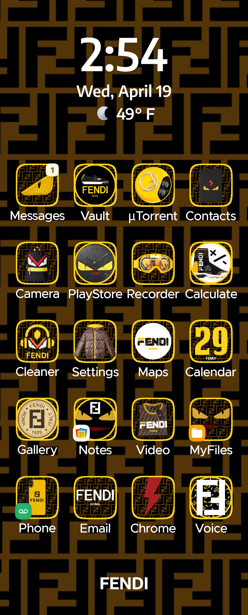 FENDI Icon Pack 20+ Custom Icons, Different Wallpapers and Lockscreens also notification Sounds an Elements to create your own icons in one zip file!